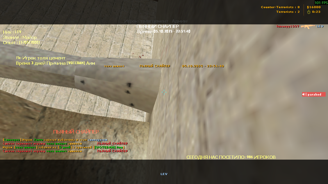 Сервер: ▅ █ ПЬЯНЫЙ СНАЙПЕР █ ▅