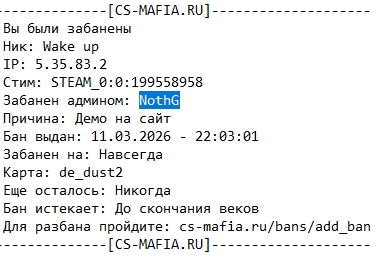 Демо для NothG. За что бан?