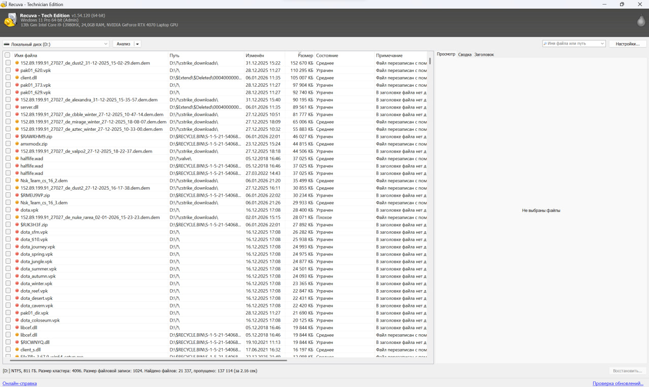 Слава богу что удалось восстановить через программу, бан выдан повторяю не заслуженно, софт и тому подобное я никогда не использовал и использовать не собираюсь. |
